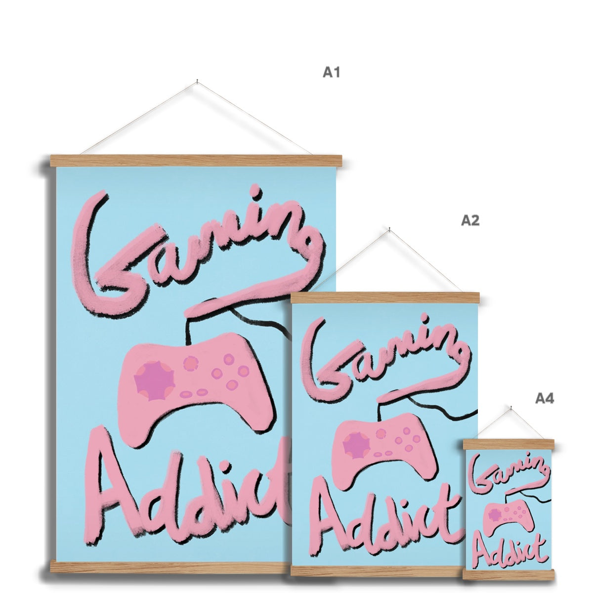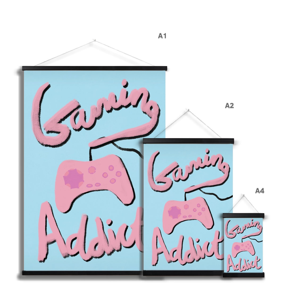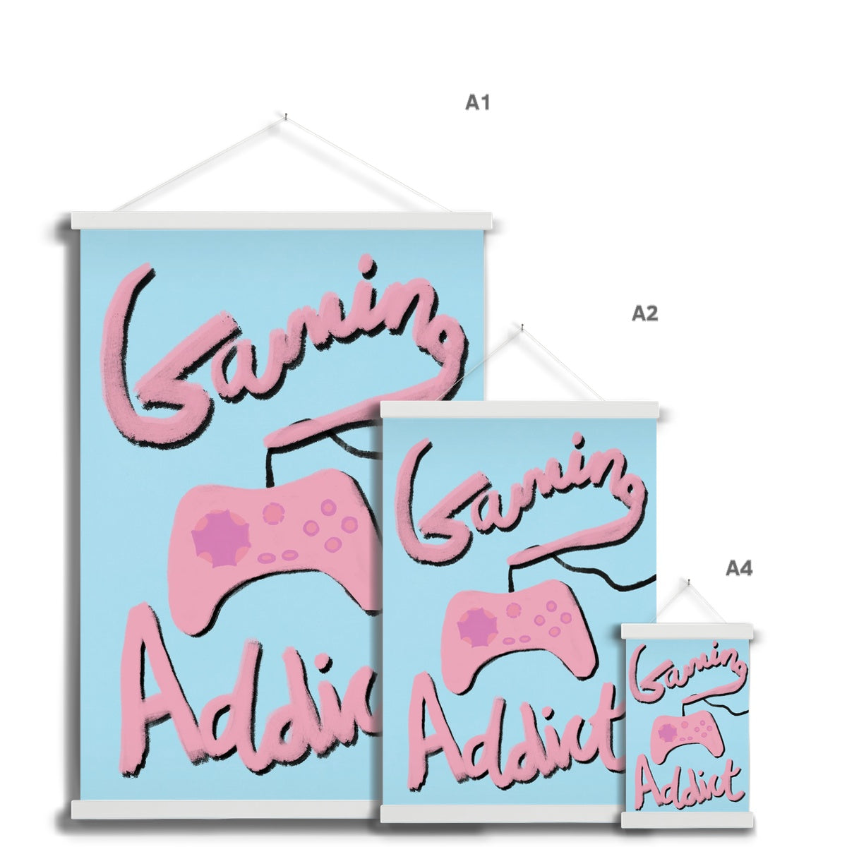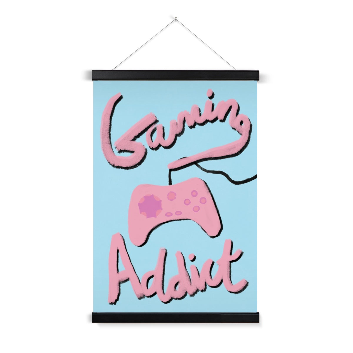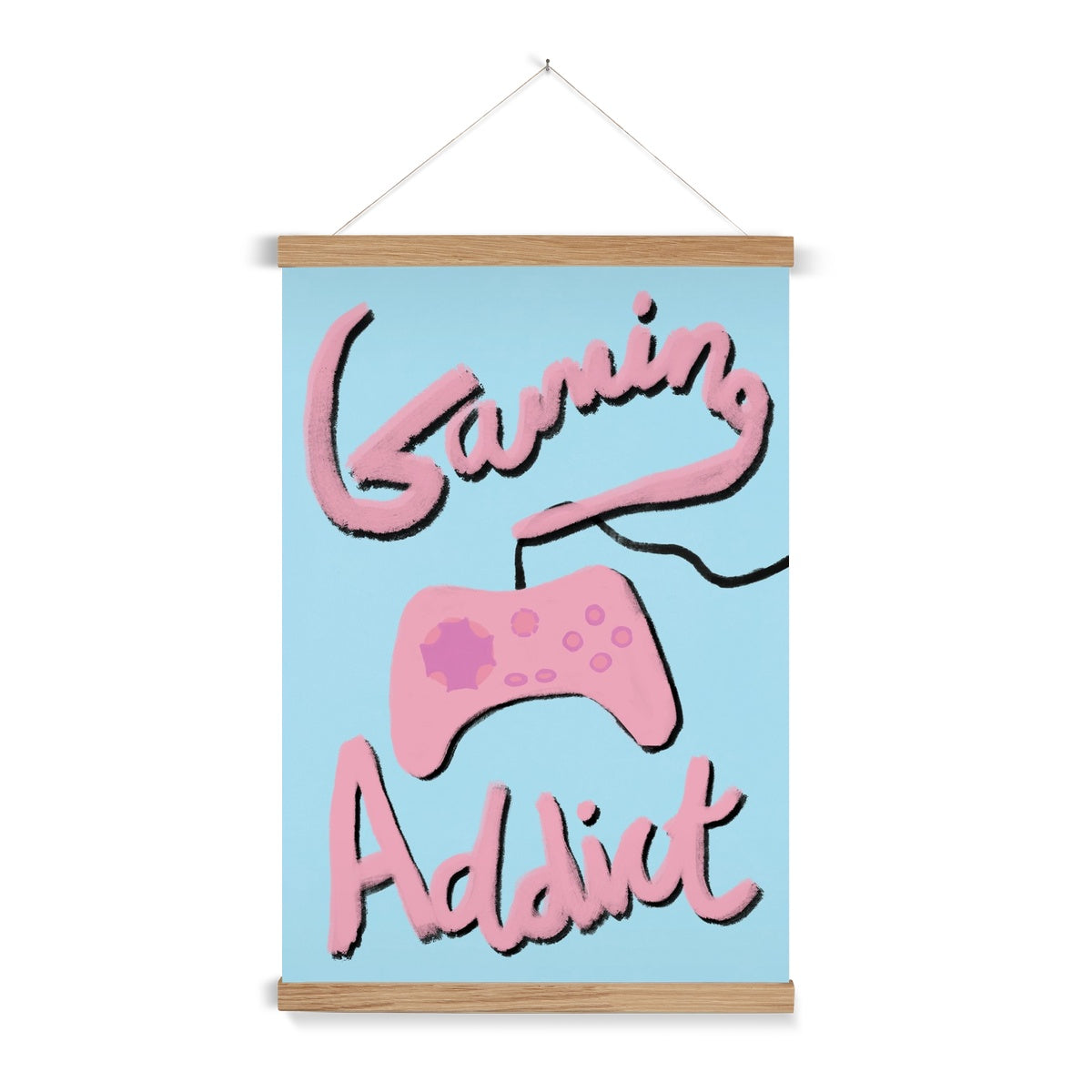 Gaming Addict Print - Light Blue, Pink Fine Art Print with Hanger