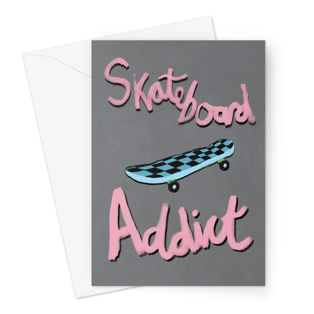 Skateboard Addict - Light Grey, Pink, Blue Greeting Card